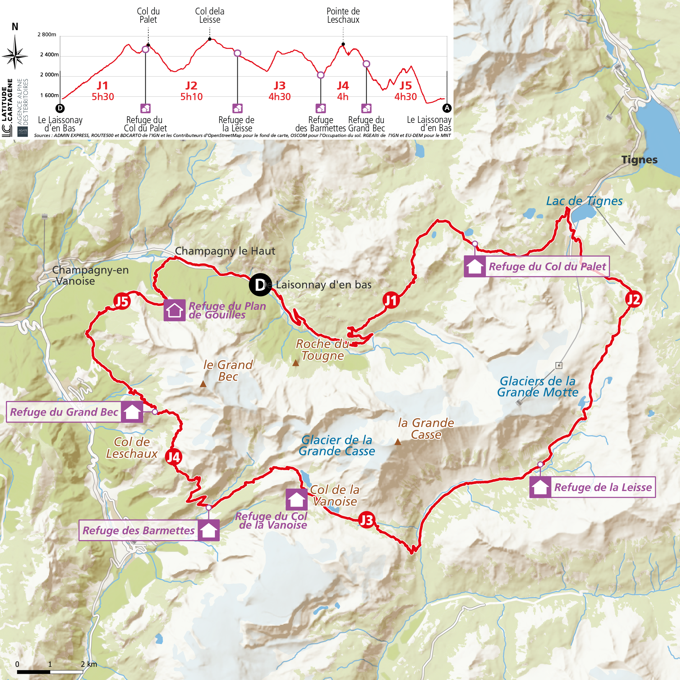 Tricky passage Aerial passage over the Col de Leschaux on stage 4. Check snow conditions with the refuge wardens.