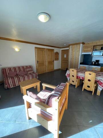 Appartement 4-6 personnes à 50 m de tous les services (commerces, remontées mécaniques, arrêt navette, garderie). Départ ski au pied de l'appartement. Vous ne pouvez pas faire plus près