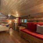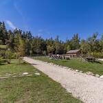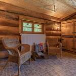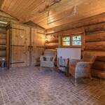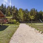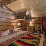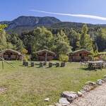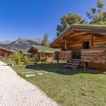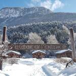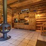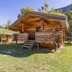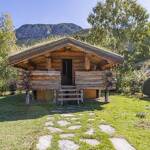 Chalet de rondins de bois bruts avec toiture végétalisée. Un lit 2 personnes (draps inclus, lit fait). Literie écologique 100% pur laine. Toilettes sèches privatives. Espace détente. Réserve d'eau potable dans un huilier en inox. Chauffage avec poêle à bois. Terrasse abritée privative + espace extérieur commun. Salle d'eau commune dans une cabane indépendante (2 douches + 2 lavabos). Prestation en demi-pension exclusivement.