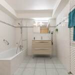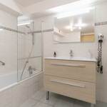 - une salle de bain avec meuble-lavabo, baignoire équipée d'un pare-douche, radiateur sèche-serviettes et WC.