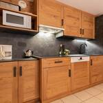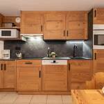 Le coin cuisine dispose d'une plaque en vitrocéramique, d’un réfrigérateur 3*, d'un lave-vaisselle, d'un four électrique, d'un micro-onde et d'une hotte aspirante, deux poubelles pour le tri des déchets.
