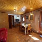- Une pièce de vie chaleureuse avec télévision, banquette et table à manger.
