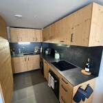 - une cuisine ouverte équipée (four, micro-onde, lave-vaisselle, appareils à raclette et à fondue, cafetière expresso sans dosettes, grille pain, bouilloire, mixeur à soupe, tourtière, moule...)