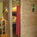 Séjour coin-cuisine avec banquette (2 lits 1 pers.), 1 chambre (1 lit 2 pers.), coin-montagne (2 lits 1 pers. superposés), salle de bains, wc séparés. Lave-vaisselle, micro-ondes, TV. Terrasse privative avec salon de jardin et barbecue.