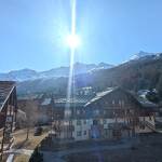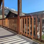 Le tout est prolongé par un balcon privatif offrant une belle ouverture sur les paysages alpins, avec vue dégagée sur les sommets environnants et les pistes de ski.