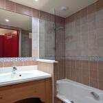 - Une cuisine équipée (lave-vaisselle, plaques vitrocéramiques, four micro-ondes/grill, réfrigérateur, cafetière, bouilloire, grille-pain…), ouverte sur un séjour lumineux avec un couchage en canapé-lit gigogne.
