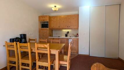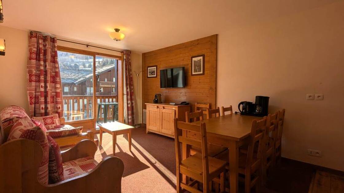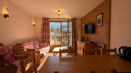 Situé dans le bâtiment B de la résidence Les Alpages de Val Cenis, cet appartement chaleureux et partiellement mansardé allie authenticité alpine et confort contemporain, dans un cadre soigné au cœur des montagnes.
